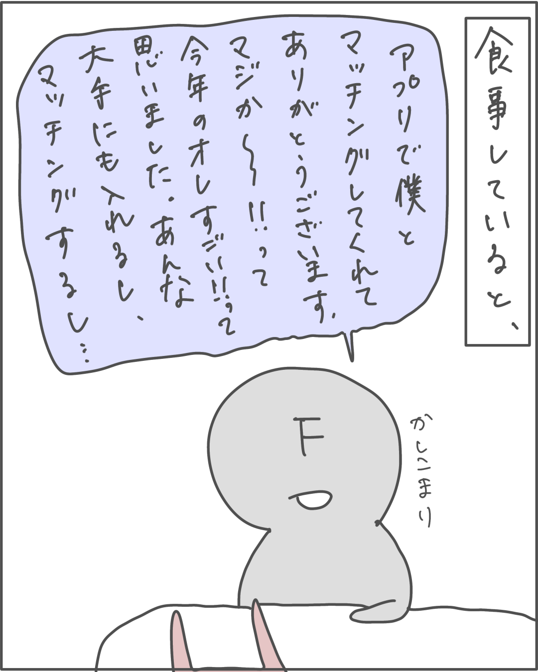 HOME > 実話婚活漫画 > 街アプ短話編 > 街アプ短話編 マッチングアプリ編 食い気味すぎたFさん2 2026年3月19日 マッチングアプリ編 食い気味すぎたFさん3 続きを見る Twitter Share Pocket Hatena Pinterest LINE URLコピー -街アプ短話編 -マッチングアプリ